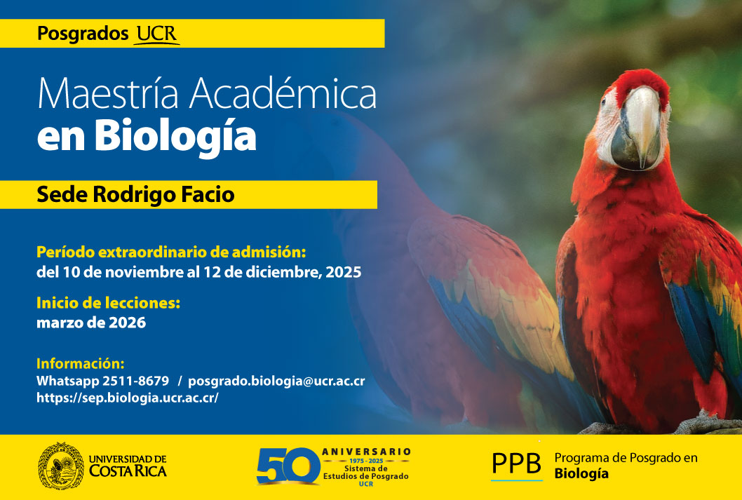 - Para la maestría en Biología, se requiere una disponibilidad de por lo menos medio tiempo (Artículo 14 Reglamento Posgrado en Biología). En aquellos casos en que el profesor consejero lo considere justificado, la Comisión podrá aceptar a un estudiante con disponibilidad inferior sin perjuicio de lo estipulado en el artículo antes citado. En el caso de la Maestría en Biología con énfasis en Genética y Biología Molecular, se requiere una disponibilidad de tiempo completo